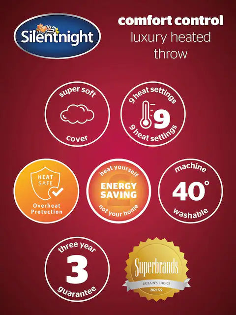 RELAX SAFELY: Features Heatsafe overheat protection for total peace of mind. The Silentnight Heated Throw is uniquely designed with stitched channels to prevent dangerous hots spots, plus features auto shut off after 2 hours for safety.