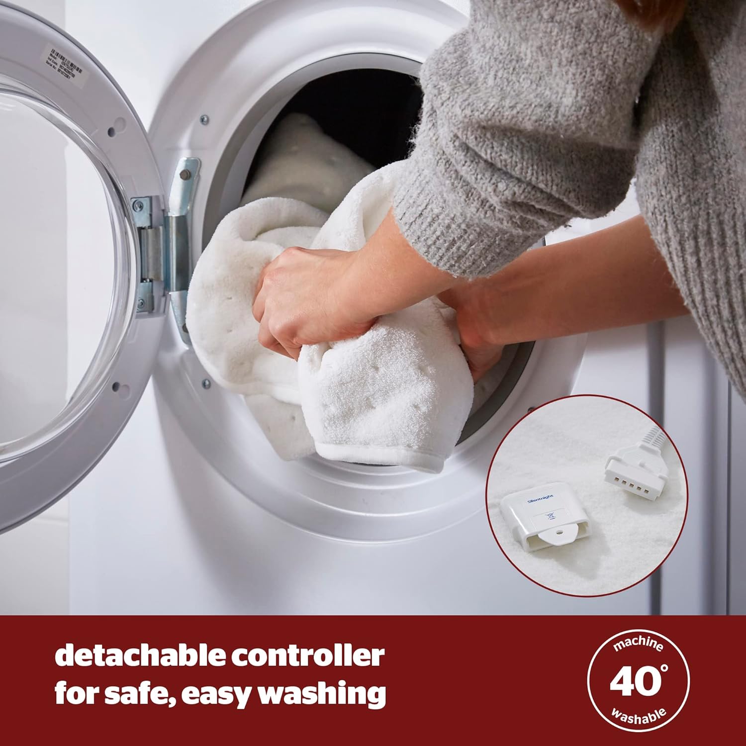 The fast heat-up feature ensures that you don't have to wait long to dive into a snuggly bed. Safety is paramount, which is why this electric blanket comes with overheat protection. You can rest easy knowing that this blanket is designed to automatically shut off in case it gets too hot. The easy-fit straps keep the blanket securely in place, so you can move around without any discomfort. Machine washable for your convenience.
